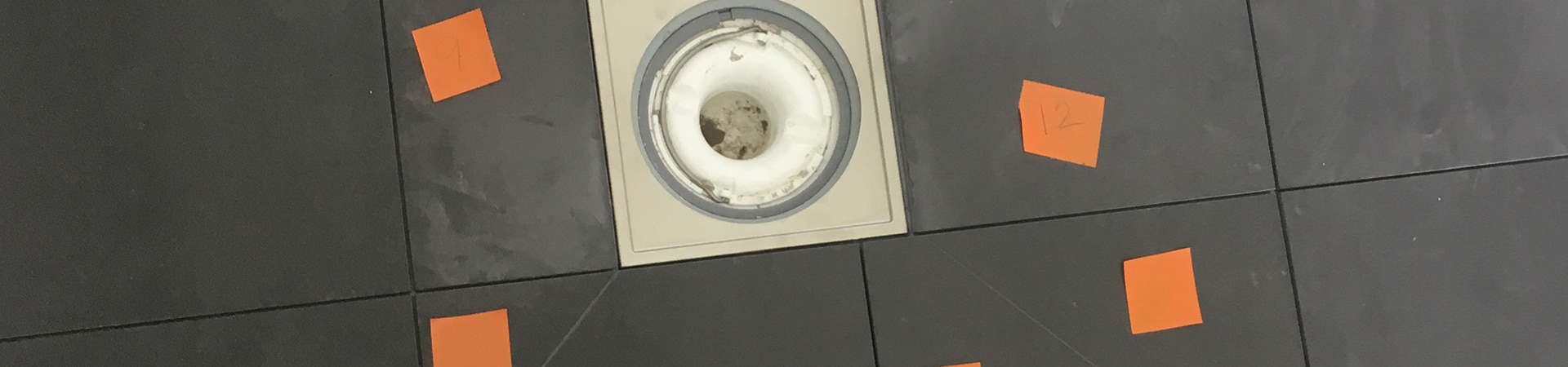 Golv och väggar spacklas för att få en jämn yta med ett fall mot golvbrunnen.